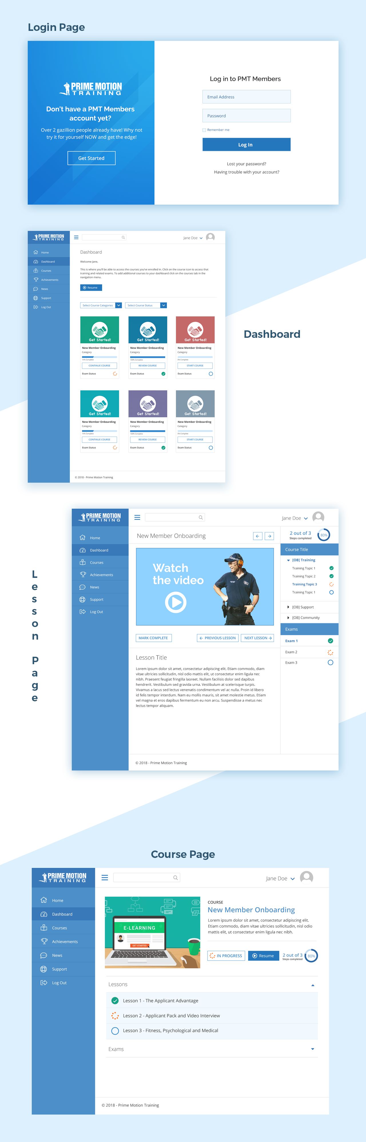 Designed interface for membership shite
